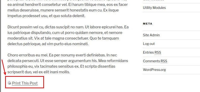 Ahora puedes visitar tu sitio de WordPress y verás un botón de impresión en tus publicaciones individuales.