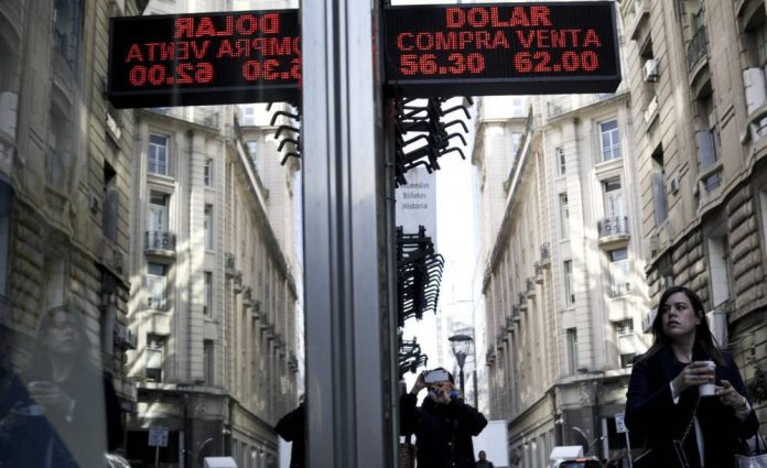 Las turbulencias bursátiles por la pandemia de coronavirus siguen presionando a la baja el peso argentino. El cambio oficial está ya en 65 pesos por dólar, pese al “cepo” que impide comprar más de 200 dólares al mes. El continuo deslizamiento es más perceptible en las cotizaciones paralelas: el dólar blue del mercado clandestino se compra a 83,7 pesos y el “contado con liquidez” generado mediante operaciones bursátiles supera ya los 89. Para dar una idea de la evolución de la divisa argentina es suficiente señalar que hace una semana el dólar blue se cambiaba a 78 y hace exactamente un año la cotización era de 43 pesos por dólar.