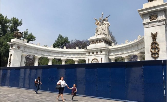 Hemiciclo a Juárez, rodeado con tapiales en la víspera de las marchas por el Día Internacional de la Mujer #Video: Johana Robles pic.twitter.com/t2eTRMsqVh